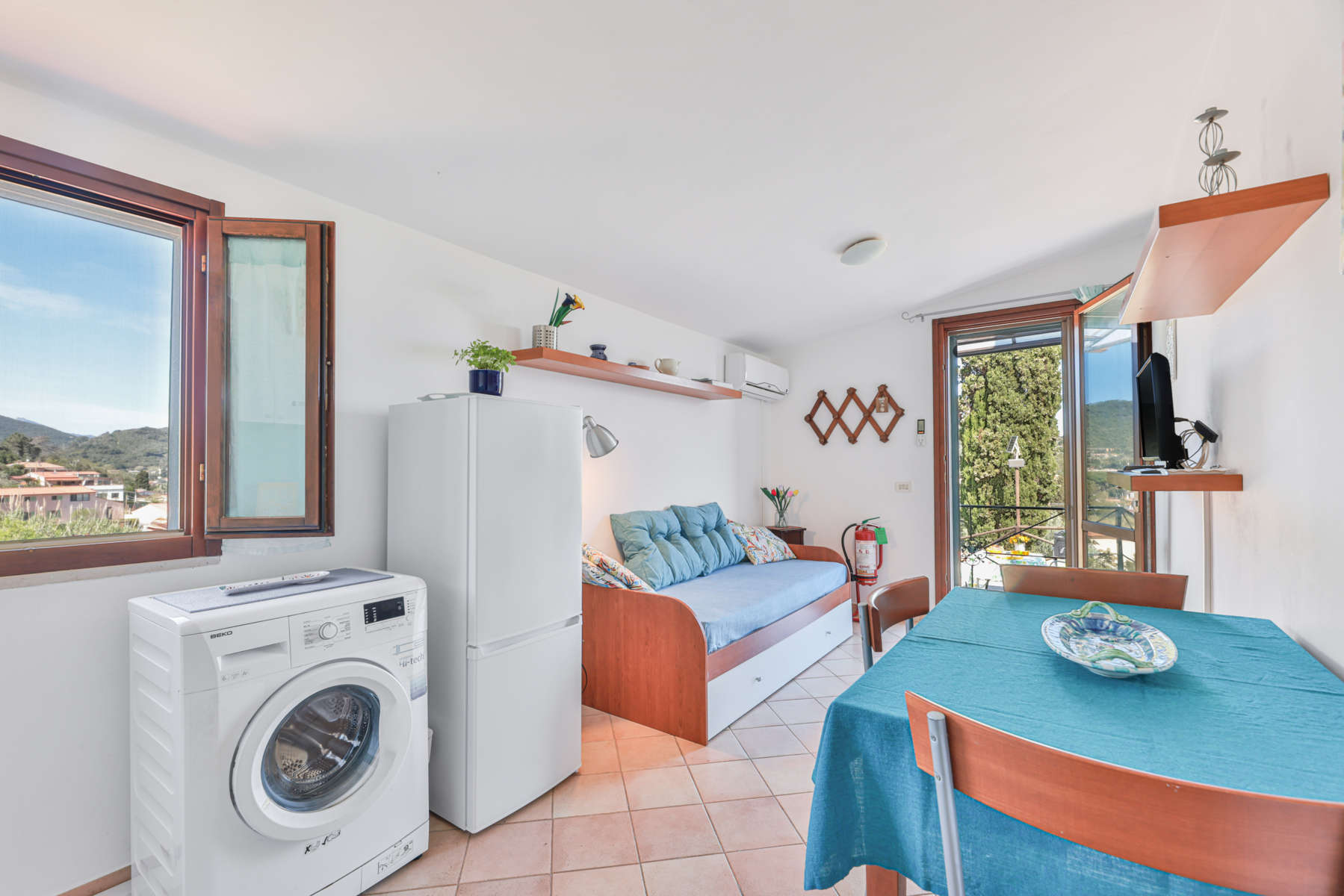 Die Innenräume sind praktisch und gut aufgeteilt und bestehen aus einem Wohnbereich mit Kochnische, einem Doppelzimmer und einem Bad mit Dusche. Die Klimaanlage sorgt auch in den Sommermonaten für angenehmen Wohnkomfort. Dank der Lage sind das Zentrum von Portoferraio, der Hafen und mehrere Strände der Nordküste bequem mit dem Auto erreichbar.