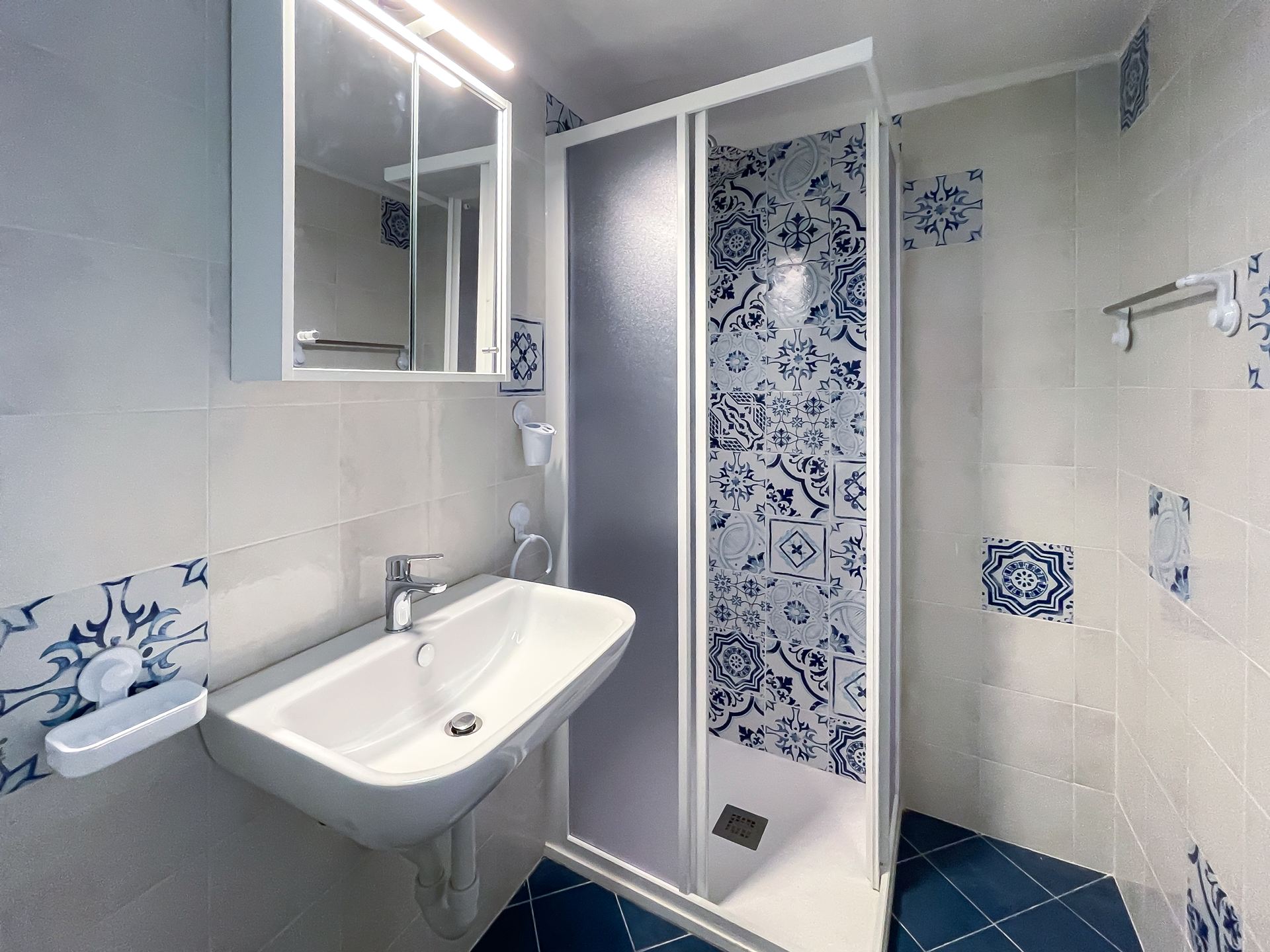 The interior consists of a living room with a kitchenette and a pull-out bed, a double bedroom, a bedroom with a bunk bed, and a bathroom with a shower cabin. ( N.B the bathroom will be renovated for the 2024 season.)