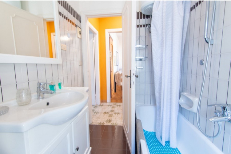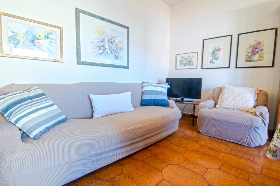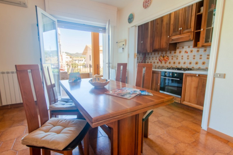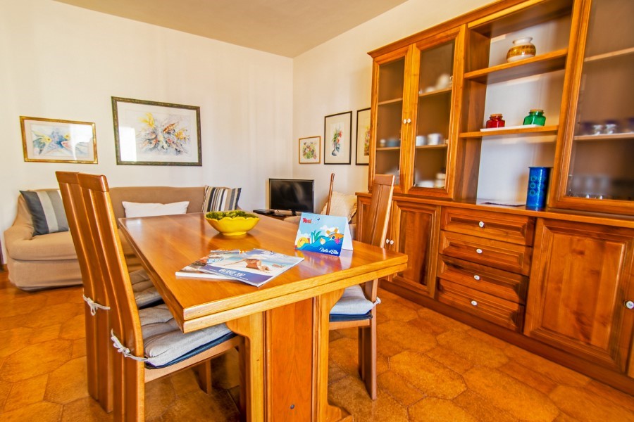 The three-room apartment, suitable for up to 5 guests, offers functional spaces designed for practical and relaxing stays. The internal layout includes a living area with kitchenette and sleeping spaces, making it suitable for both families and small groups. Its strategic location allows easy access to both the beach and the main attractions of the village.