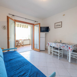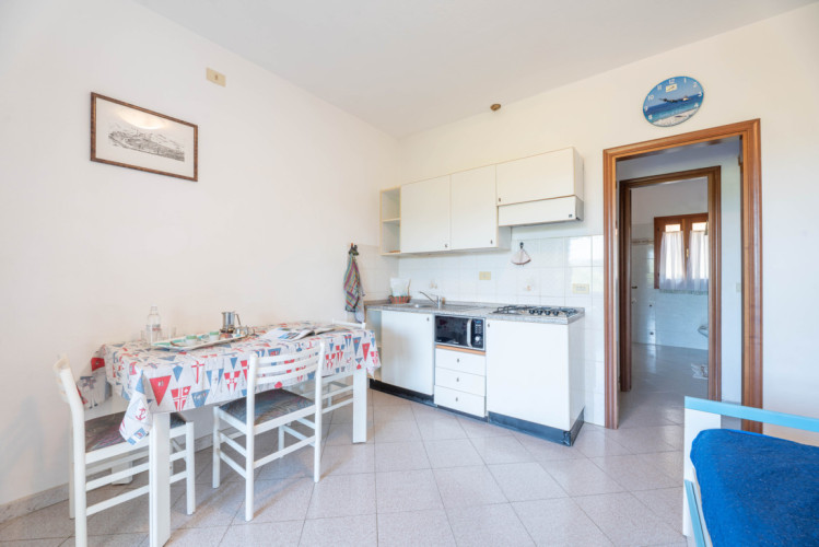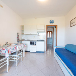 I bilocali, da 4 e 5 posti, sono composti da un luminoso soggiorno con angolo cottura e divano letto per due persone, una camera matrimoniale e un bagno con box doccia. Ogni appartamento è dotato di aria condizionata, connessione Wi-Fi, frigorifero, forno a microonde e TV. Il terrazzo attrezzato consente di pranzare all’aperto in piena tranquillità.