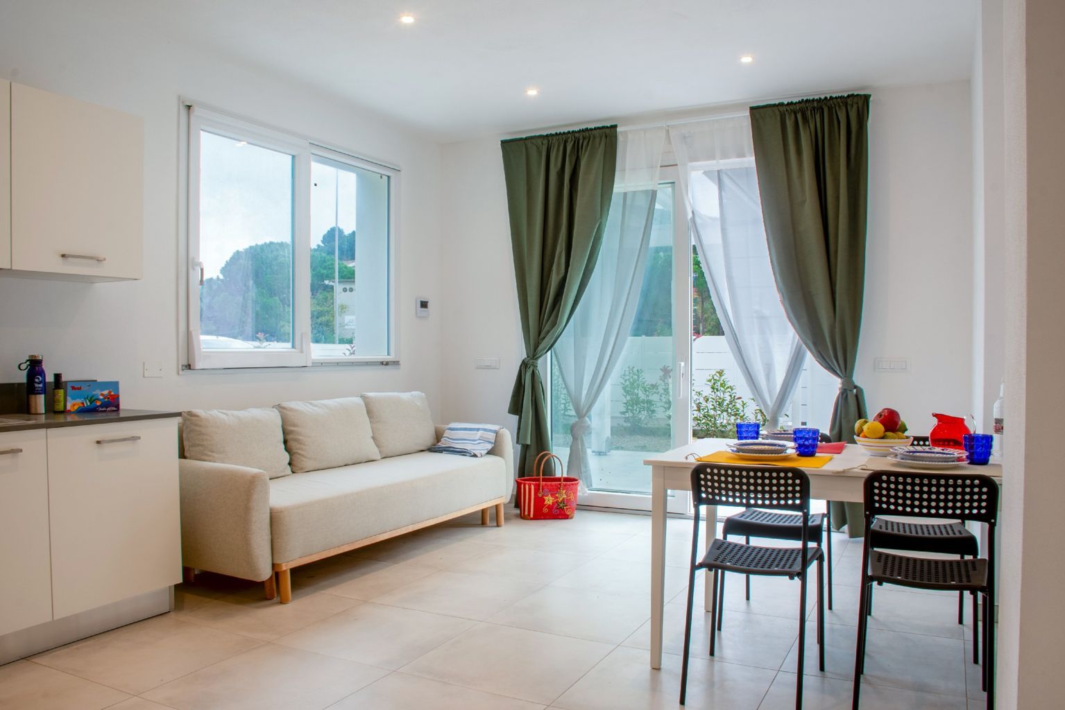 L’appartamento Maestrale è un trilocale pensato per garantire un soggiorno pratico e confortevole. Gli ambienti interni sono ben organizzati e comprendono un soggiorno con angolo cottura, due camere da letto e servizi privati. La disposizione degli spazi lo rende adatto a famiglie o piccoli gruppi, mentre la vicinanza immediata al mare permette di vivere la vacanza senza l’uso dell’auto. Gli spazi esterni completano la sistemazione, offrendo la possibilità di rilassarsi all’aria aperta dopo una giornata di spiaggia.