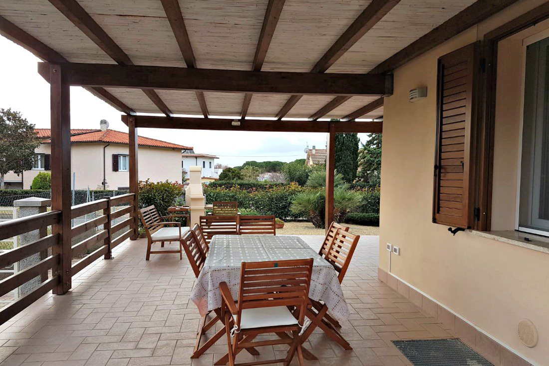 E’ distribuito su due livelli (piano terra e seminterrato) e circondato da un’ampia veranda ben attrezzata per mangiare all’aperto e per il relax.