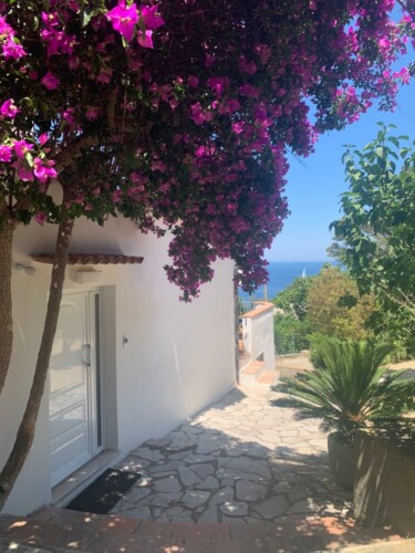 Dal soggiorno si accede ad una ampia terrazza vista mare attrezzata.