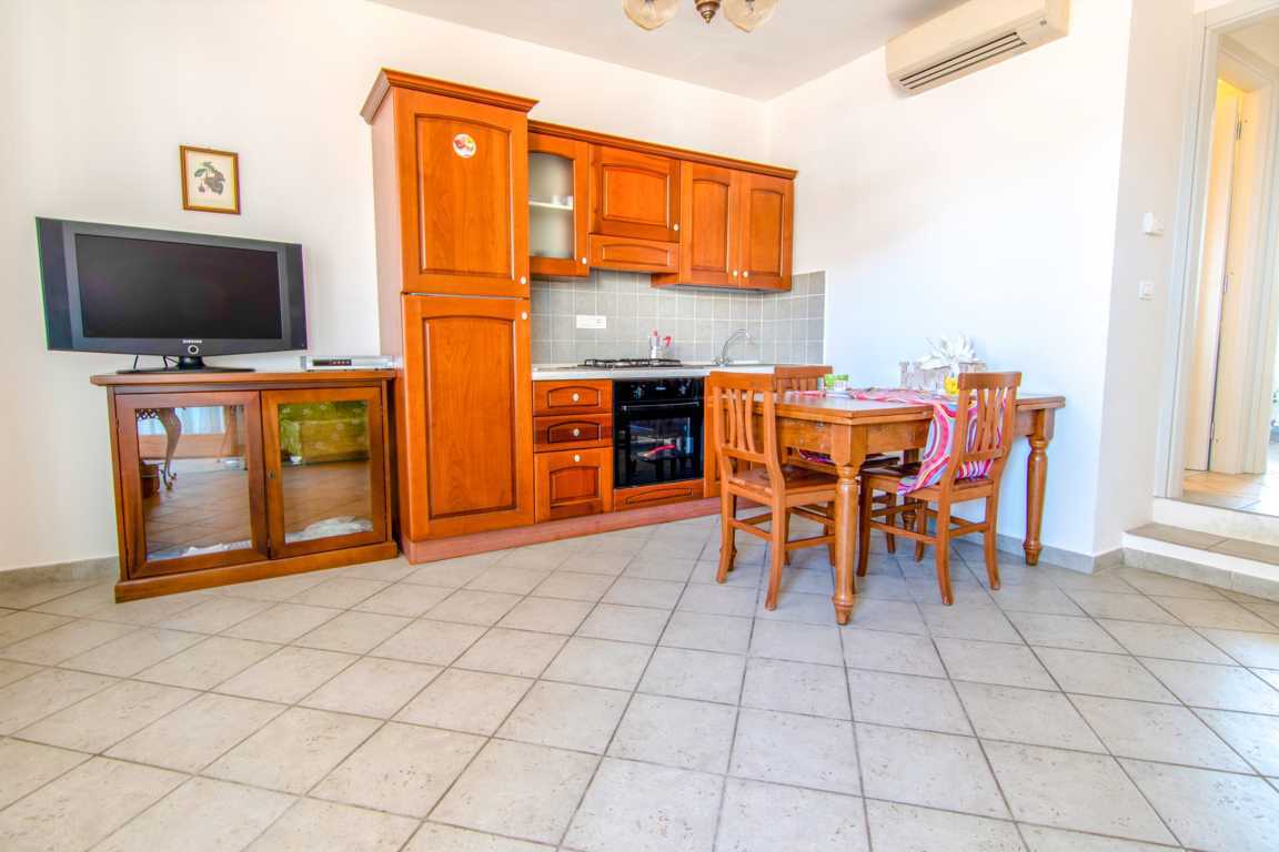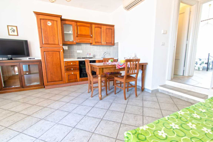 L’appartamento è arredato in modo semplice e funzionale e offre ambienti ben organizzati, pensati per una vacanza all’insegna della comodità. Gli spazi interni comprendono una zona giorno con angolo cottura, dotata anche di divano letto matrimoniale, una zona notte accogliente e un bagno completo, permettendo una gestione pratica e autonoma del soggiorno. La disposizione degli ambienti lo rende una soluzione adatta a coppie o piccoli nuclei familiari.